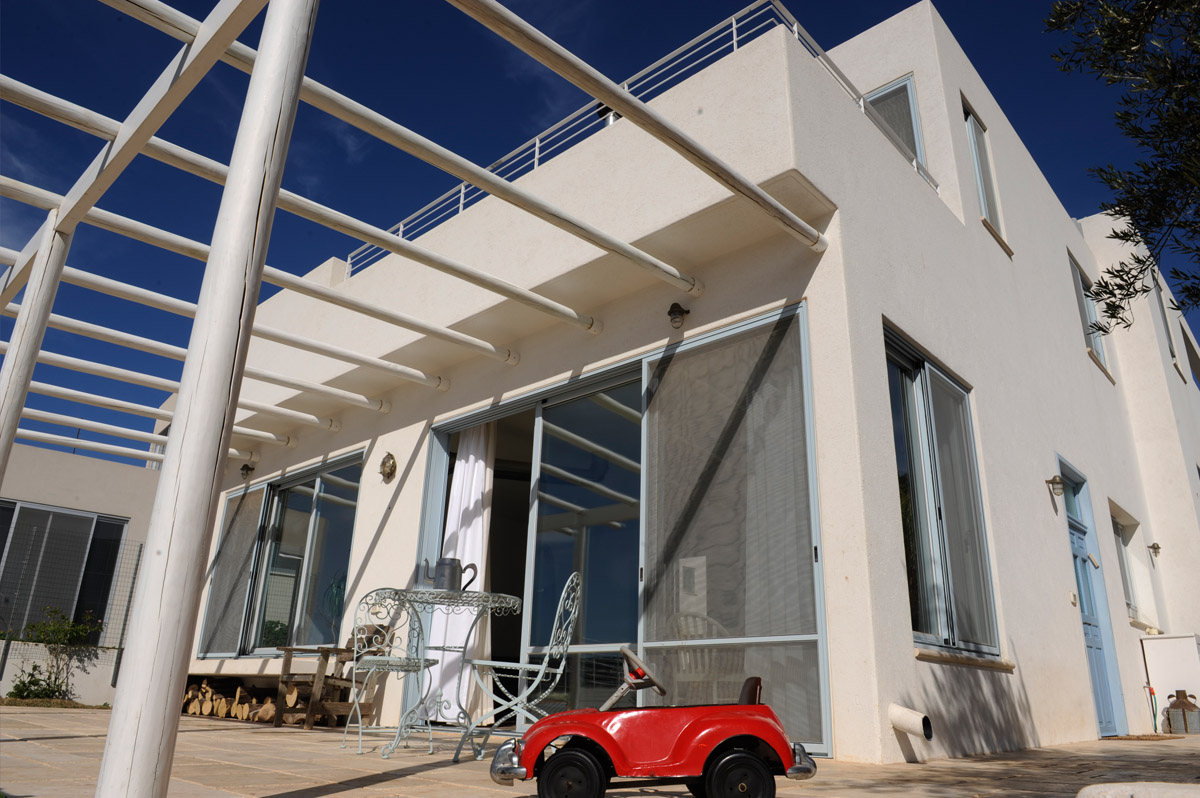 במבט מבחוץ ניתן להבחין כי על אף הטופוגרפיה הקיימת והקרבה לכביש, פתרנו את סוגיית הפרטיות והבטיחות, באמצעות הפרשי הגובה.