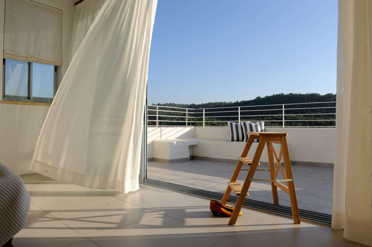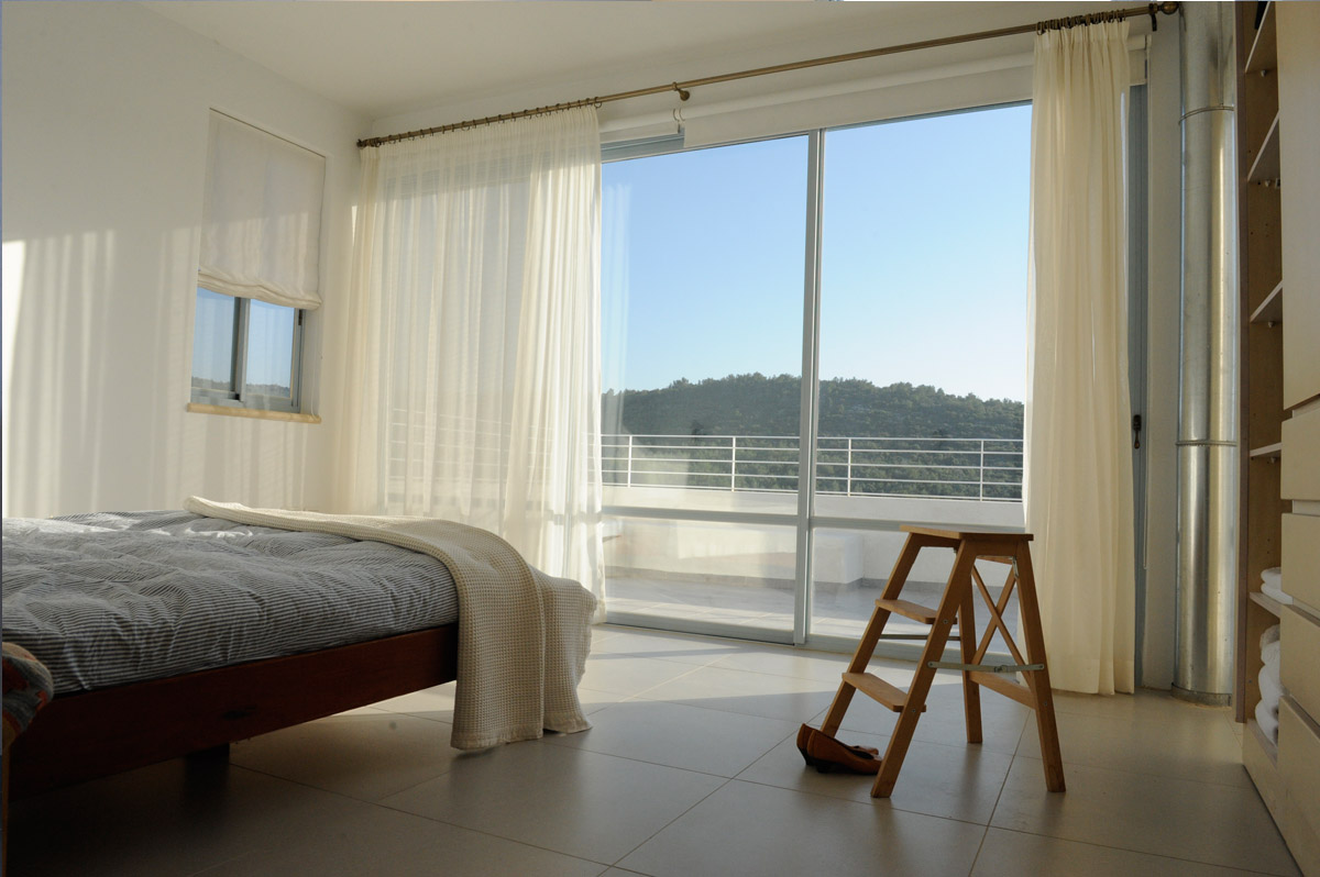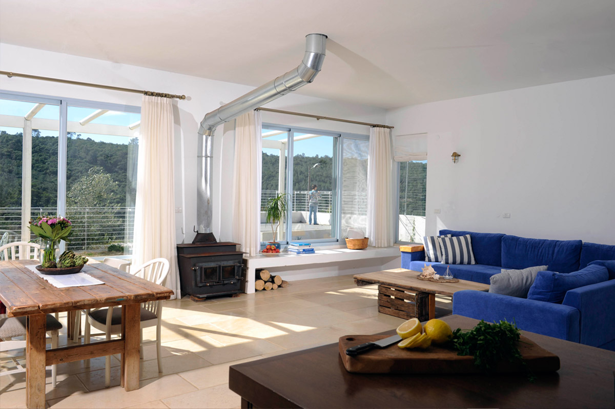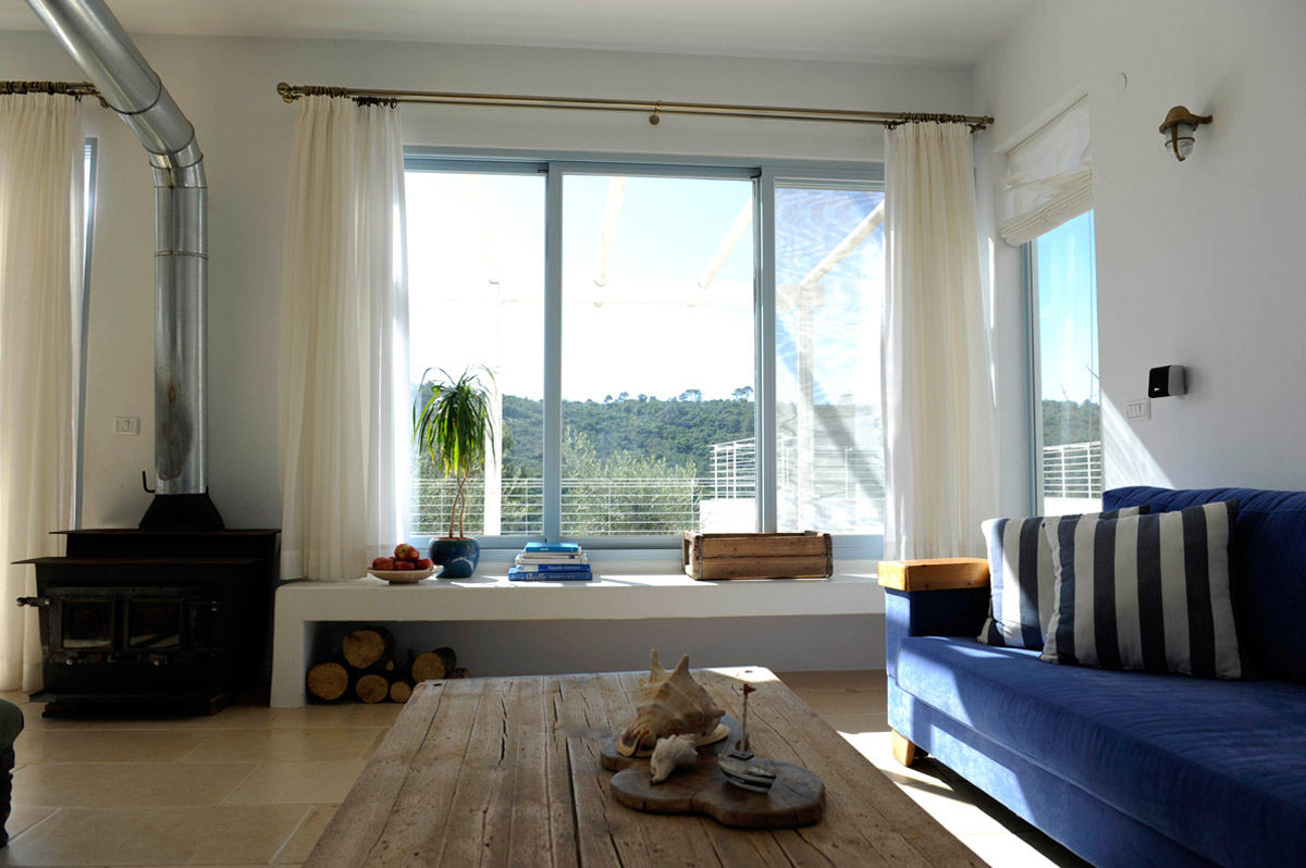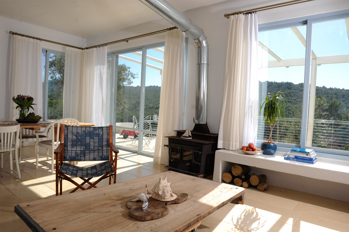 המבנה ממוקם בלב טבע פראי והקפדתי לשלב אותו מכל פינה בבית. פתח רחב בקדמת הבית לכוון הוואדי הירוק וחלונות אחוריים החושפים את הבית לנוף הררי מרשים.