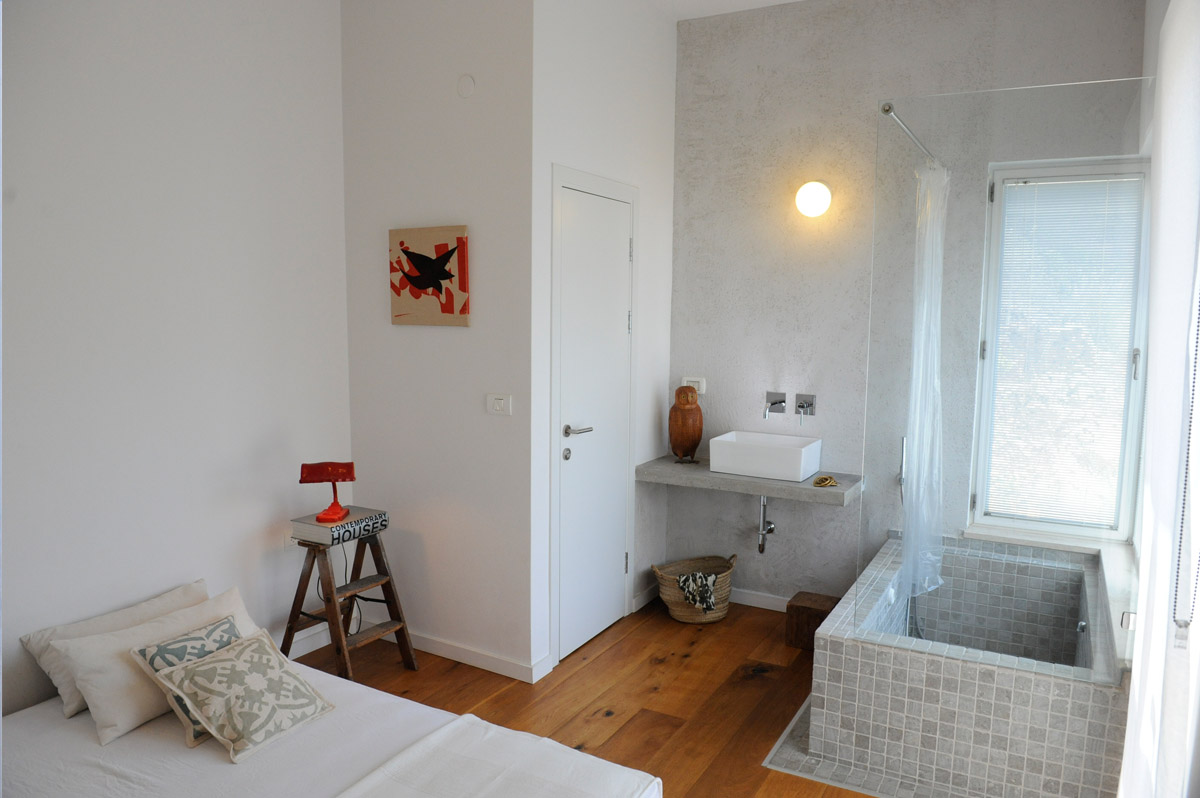 בחלקו התחתון של המגרש תוכנן סטודיו כמקשה אחת עם הבית, תוך הקפדה על פרטיות בני הבית ומשתמש הסטודיו כאחד.